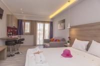 Az Apartments Aggelos minden légkondicionált lakóegysége vaságyakkal és élénk színekkel rendelkezik. A konyhasarok hűtőszekrénnyel és főzőlappal felszerelt. Minden apartman TV-vel felszerelt.