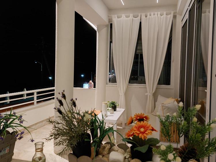 Minden apartmanhoz nagy, bútorozott erkély tartozik, kilátással a tengerre. Minden világos és tágas, kétszintes apartman márvány fürdőszobával és teljesen felszerelt konyhával rendelkezik.