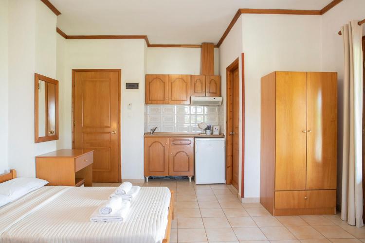 A Gravanis stúdiói erkéllyel, konyhasarokkal, hűtőszekrénnyel, főzőlappal és kis étkezővel rendelkeznek. A légkondicionált szállásokon TV és privát, zuhanyzós fürdőszoba található.